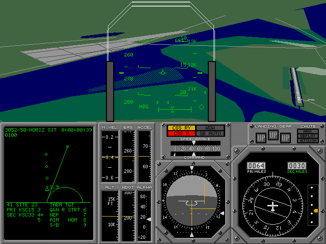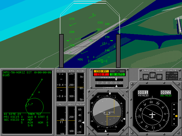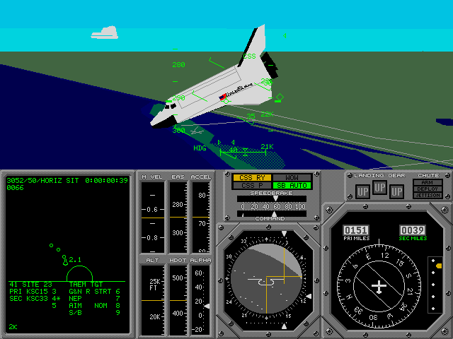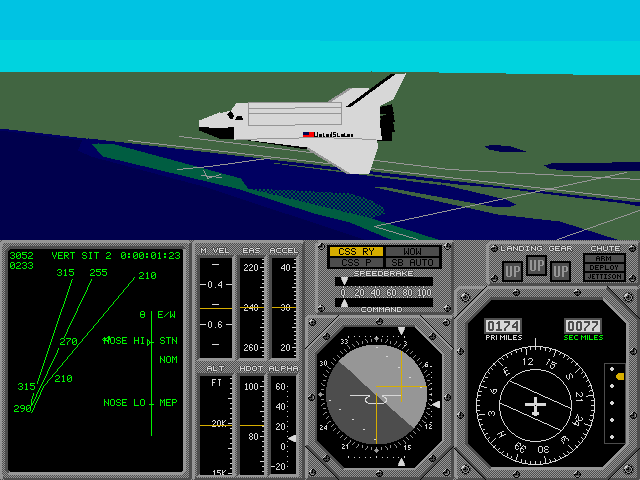SALS is a civilian flight simulator that specifically focusses on landing the Space Shuttle, already in atmosphere, on the Kennedy Space Center runway. The game was pitched as a serious product with an emphasis on realism, and features rather advanced (for its time) graphics and 3D world modelling. The game was later renamed Precision Approach.