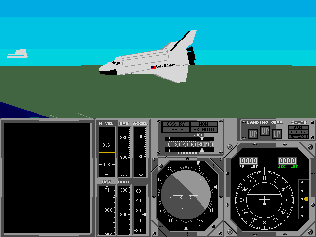 The playable demo is pretty odd. In theory, it should allow to land the shuttle from one of several starting conditions available in the full game, but the developers limited manual control to horizontal pitch only, leaving the player without much to do. It is also expected to be played with a joystick, although keyboard control is possible.